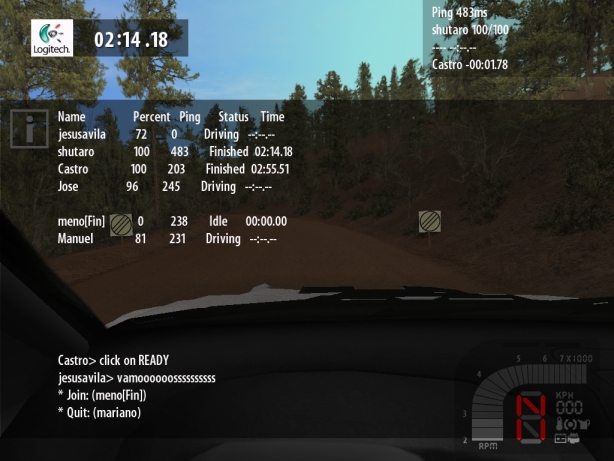 - 最下段に文字を入力してEnterすればチャット発言ができ、ラリー走行中にここで発言があった場合は走行中の画面に表示されます。