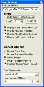 環境によってはステージがスタートしたところでこのようなエラーが出るようです(私のXP pro SP2日本語版 + UK版RBR + 1.02パッチでも発生しました)ので、現在のところは、サーバを起動する際にGame OptionsでPhysics Cheat Protectionのチェックを付けない方がよさそうです。