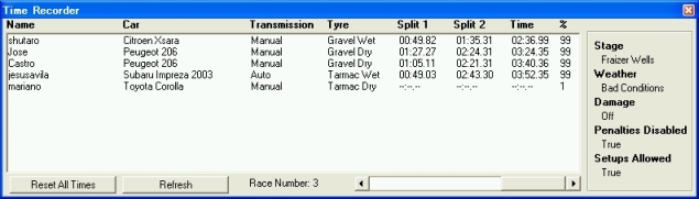 RBRnet2.0クライアントでDisplay Timesボタンをクリックすれば、タイムを記録した画面が表示されます。