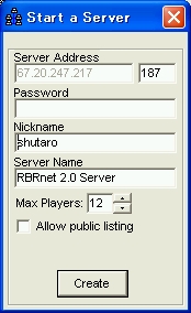 Lobby.exeでCreateボタンをクリックすれば、前述のサーバを起動するための画面が表示されます。