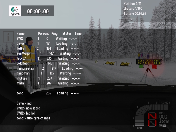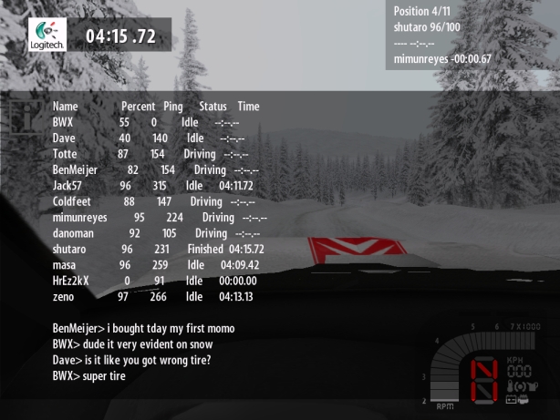 - 最下段に文字を入力してEnterすればチャット発言ができ、ラリー走行中にここで発言があった場合は走行中の画面に表示されます。